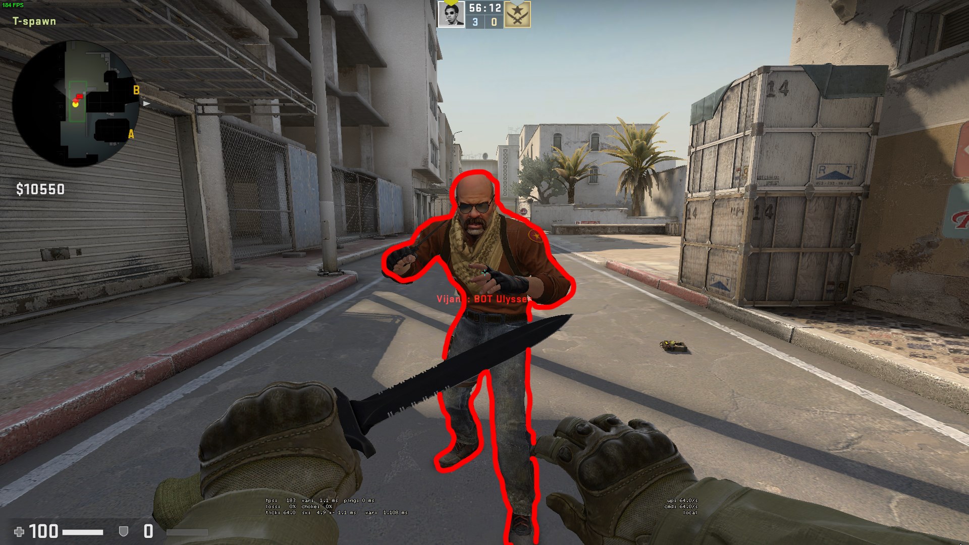 This would help on JailBreak servers to see if a Terrorist is in your knifing range and if you are allowed to shoot them without breaking any rules.